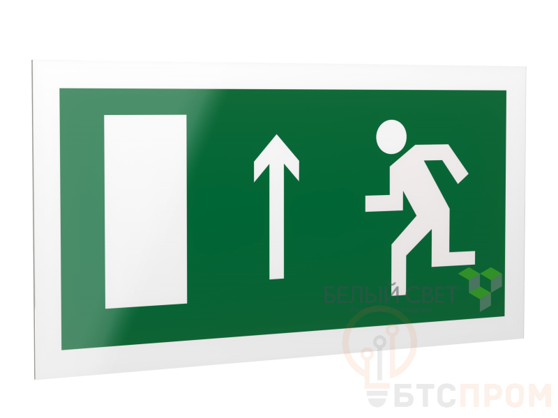 Знак безопасности "Направление к эвакуационному выходу прямо", габаритные размеры 490х290 мм, фактические размеры 400х200 мм, сигнальный цвет - зеленый, контрастный цвет - белый