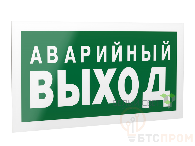 Знак безопасности "Указатель запасного выхода", габаритные размеры 490х290 мм, фактические размеры 400х200 мм, сигнальный цвет - зеленый, контрастный цвет - белый
