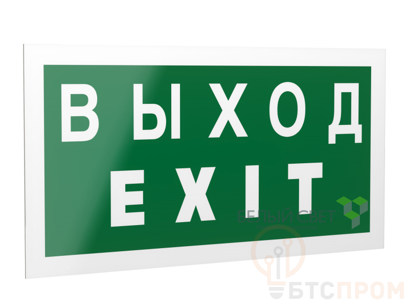 Знак безопасности "Указатель выхода", габаритные размеры 490х290 мм, фактические размеры 400х200 мм, сигнальный цвет - зеленый, контрастный цвет - белый