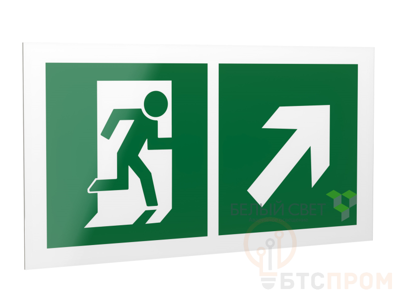 Знак безопасности PS-40206.E37"Напр. к эвакуационному выходу направо вверх" Белый свет a18207 фото в каталоге от BTSprom.by