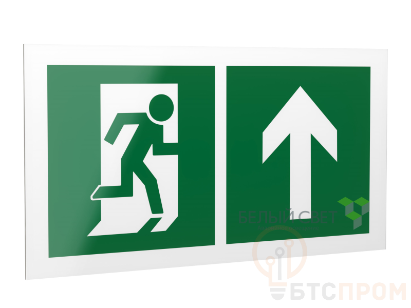 Знак безопасности "Направление к эвакуационному выходу прямо", габаритные размеры 490х290 мм, фактические размеры 400х200 мм, сигнальный цвет - зеленый, контрастный цвет - белый