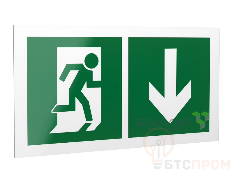 Знак безопасности PS-40206.E39"Указ. двери эвакуац. выхода (прав.)" Белый свет a18209 фото в каталоге от BTSprom.by