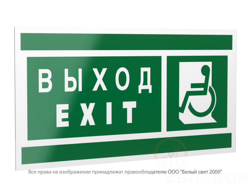 Знак безопасности PS-40206.E64 "Указатель выхода для инвалидов в креслах-колясках (левый)" — это специализированная пиктограмма, предназначенная для оснащения объектов с целью обозначения путей эвакуации и направлений движения для маломобильных групп населения.
