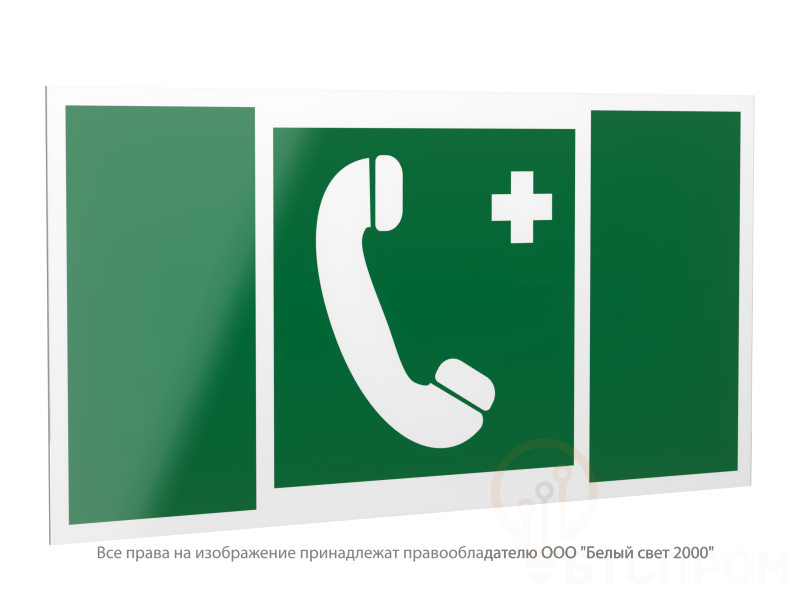 Знак безопасности PS-40206.EC06 "Телефон связи с мед. пунктом (скорой мед. помощью)" Белый свет a20642