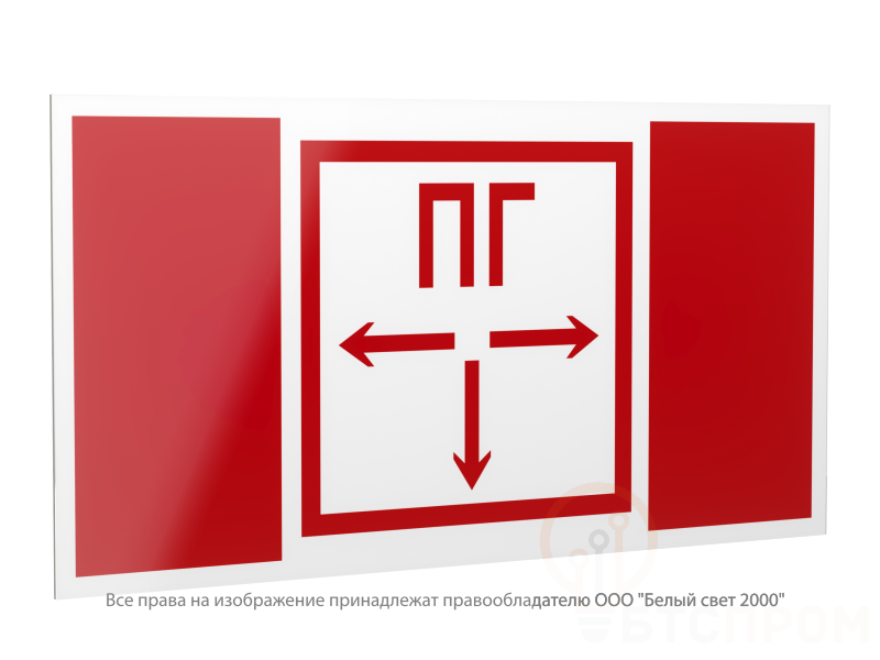 - Исполнение: Фотолюминесцентное, что обеспечивает видимость и информативность знака в условиях задымления или отключения электроэнергии.
