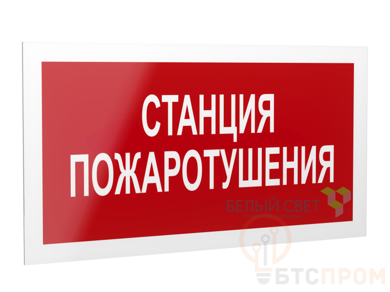 Знак безопасности "Станция пожаротушения", габаритные размеры 490х290 мм, фактические размеры 400х200 мм, сигнальный цвет - красный, контрастный цвет - белый