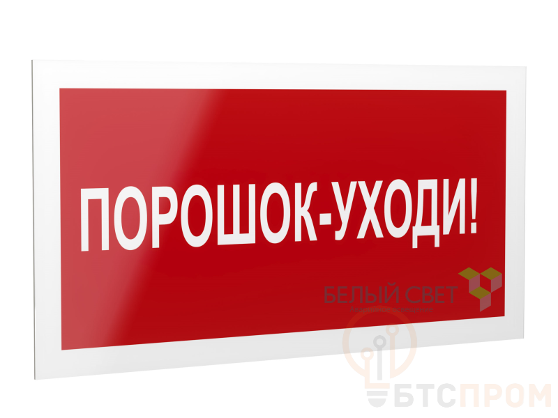 Знак безопасности "Порошок – уходи!", габаритные размеры 490х290 мм, фактические размеры 400х200 мм, сигнальный цвет - красный, контрастный цвет - белый