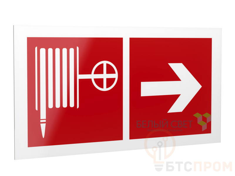 Знак безопасности "Указатель движения к пожарному крану направо", габаритные размеры 490х290 мм, фактические размеры 400х200 мм, сигнальный цвет - красный, контрастный цвет - белый