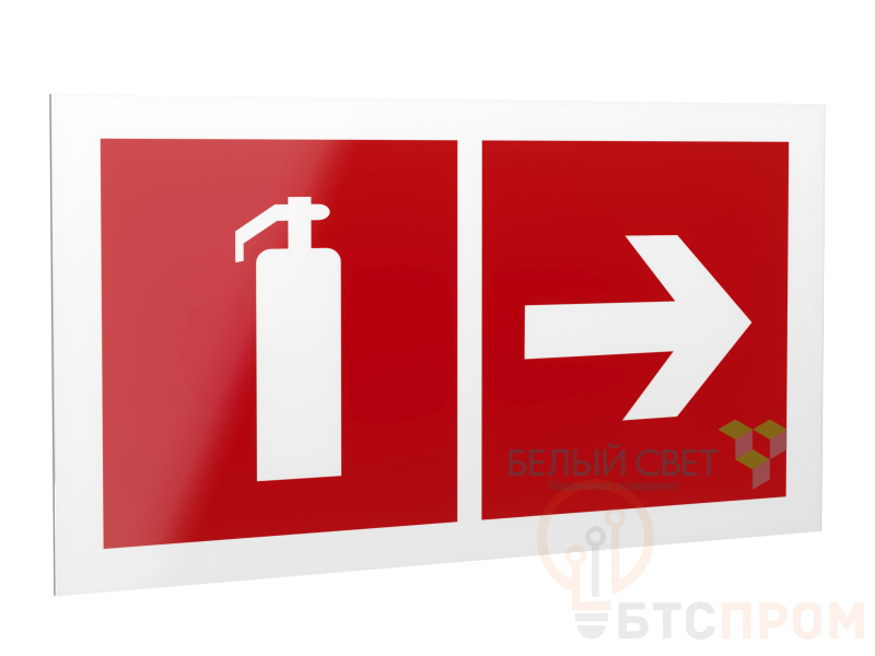 Знак безопасности "Указатель движения к огнетушителю направо", габаритные размеры 490х290 мм, фактические размеры 400х200 мм, сигнальный цвет - красный, контрастный цвет - белый