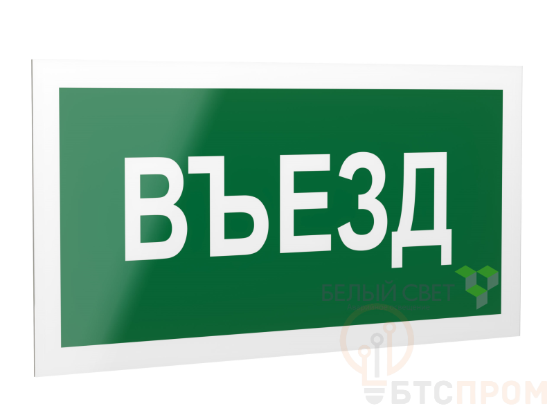 Знак безопасности "Указатель въезда", габаритные размеры 490х290 мм, фактические размеры 400х200 мм, сигнальный цвет - зеленый, контрастный цвет - белый