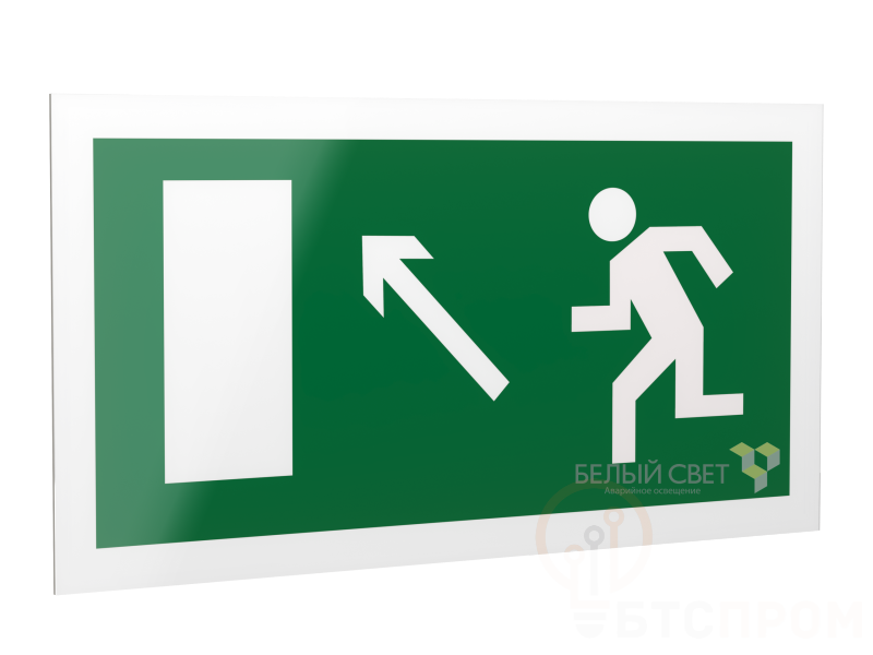 Знак безопасности PS-42226.E06 "Напр. к эвакуационному выходу налево вверх" Белый свет a23552 фото в каталоге от BTSprom.by