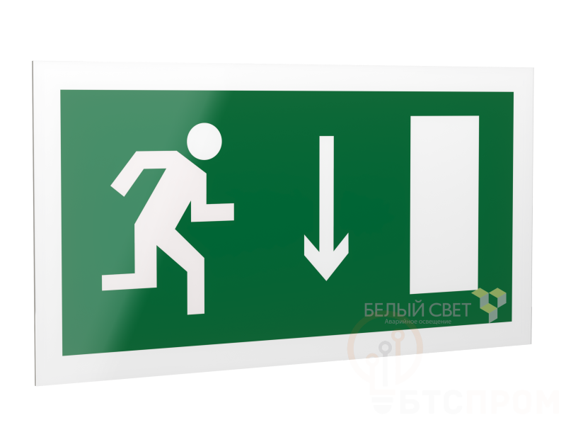 Знак безопасности PS-42226.E09 "Указ. двери эвакуац. выхода (прав.)" Белый свет a23555 фото в каталоге от BTSprom.by