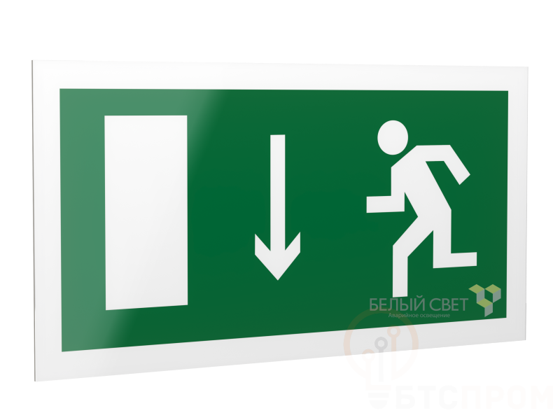 Знак безопасности PS-42226.E10 "Указ. двери эвакуационного выхода (лев.)" Белый свет a23556 фото в каталоге от BTSprom.by