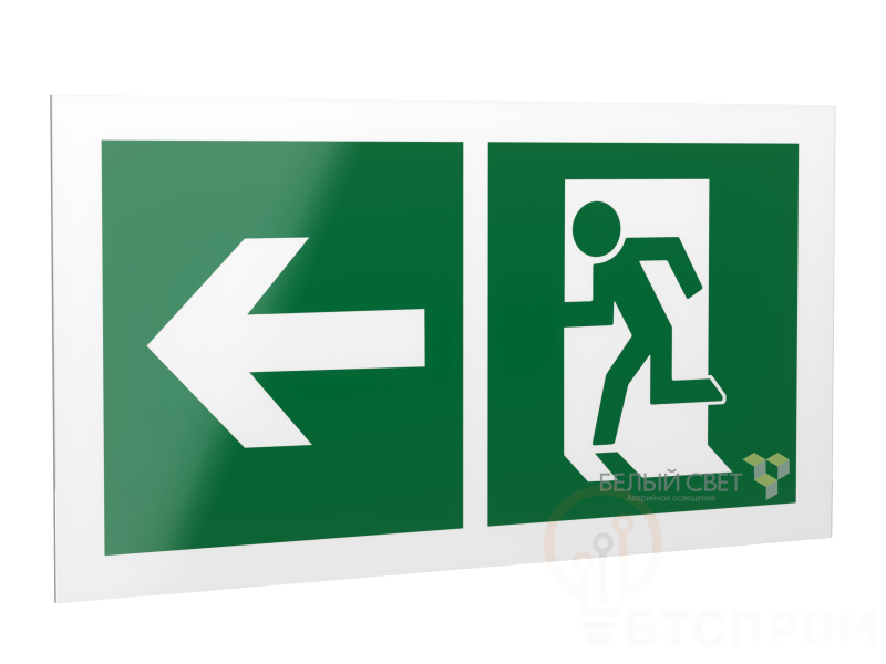 Знак безопасности PS-42226.E32 "Напр. к эвакуационному выходу налево" Белый свет a23563 фото в каталоге от BTSprom.by