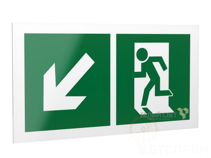 Знак безопасности PS-42226.E33 "Напр. к эвакуационному выходу налево вниз" Белый свет a23564 фото в каталоге от BTSprom.by
