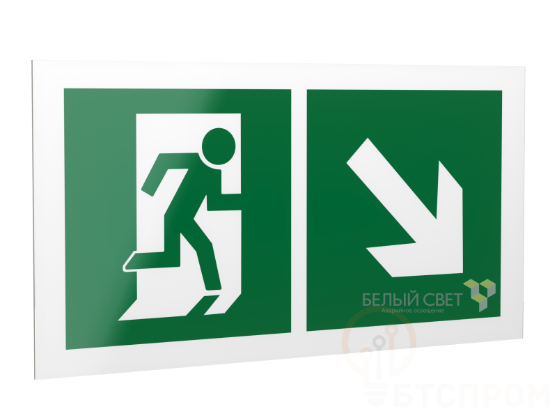 Знак безопасности PS-42226.E36 "Напр. к эвакуационному выходу направо вниз" Белый свет a23567 фото в каталоге от BTSprom.by