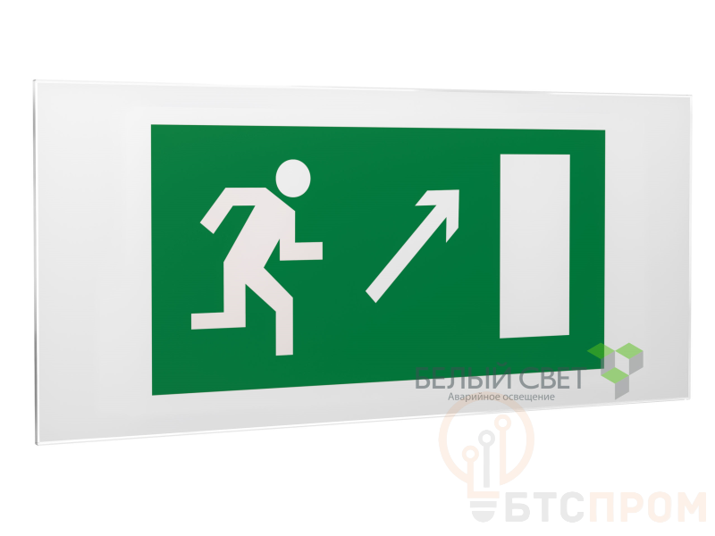 Знак безопасности "Направление к эвакуационному выходу направо вверх", габаритные размеры 545х235 мм, фактические размеры 400х200 мм, сигнальный цвет - зеленый, контрастный цвет - белый