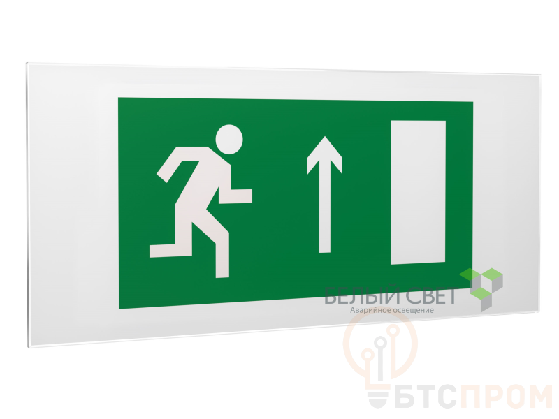 Знак безопасности "Направление к эвакуационному выходу прямо", габаритные размеры 545х235 мм, фактические размеры 400х200 мм, сигнальный цвет - зеленый, контрастный цвет - белый