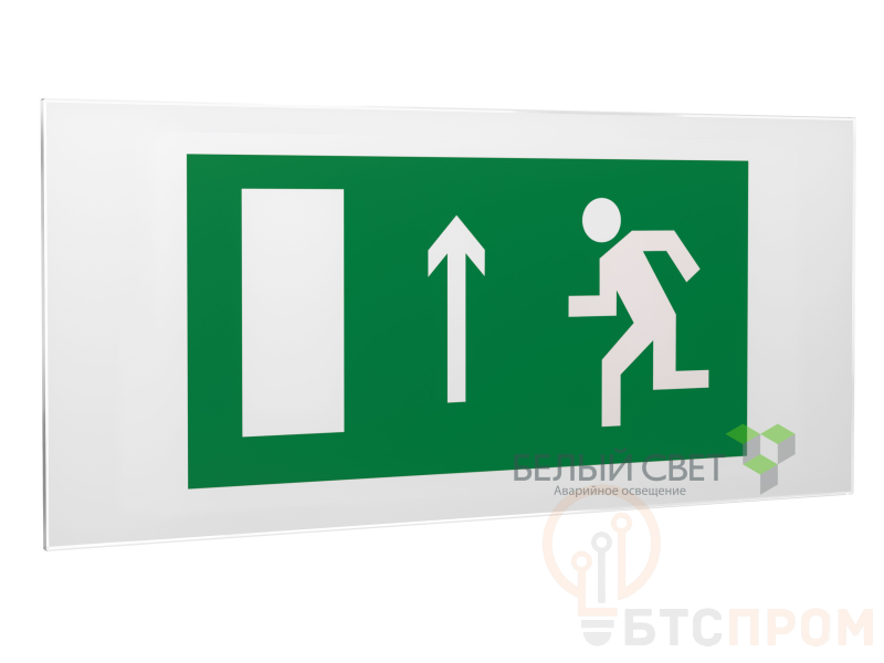 Знак безопасности "Направление к эвакуационному выходу прямо", габаритные размеры 545х235 мм, фактические размеры 400х200 мм, сигнальный цвет - зеленый, контрастный цвет - белый