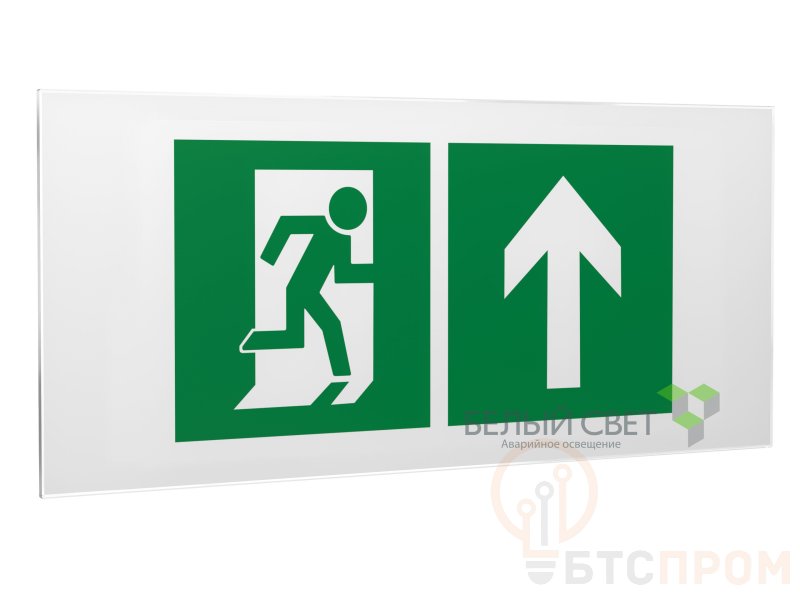Знак безопасности "Направление к эвакуационному выходу прямо", габаритные размеры 545х235 мм, фактические размеры 400х200 мм, сигнальный цвет - зеленый, контрастный цвет - белый