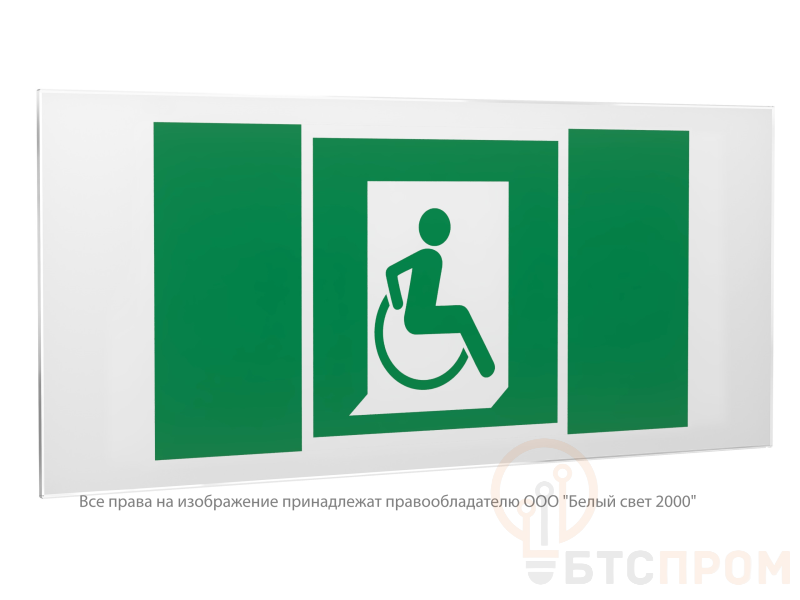 - Назначение: Четкое обозначение направления к выходу, адаптированному для людей с ограниченными физическими возможностями (правый выход).