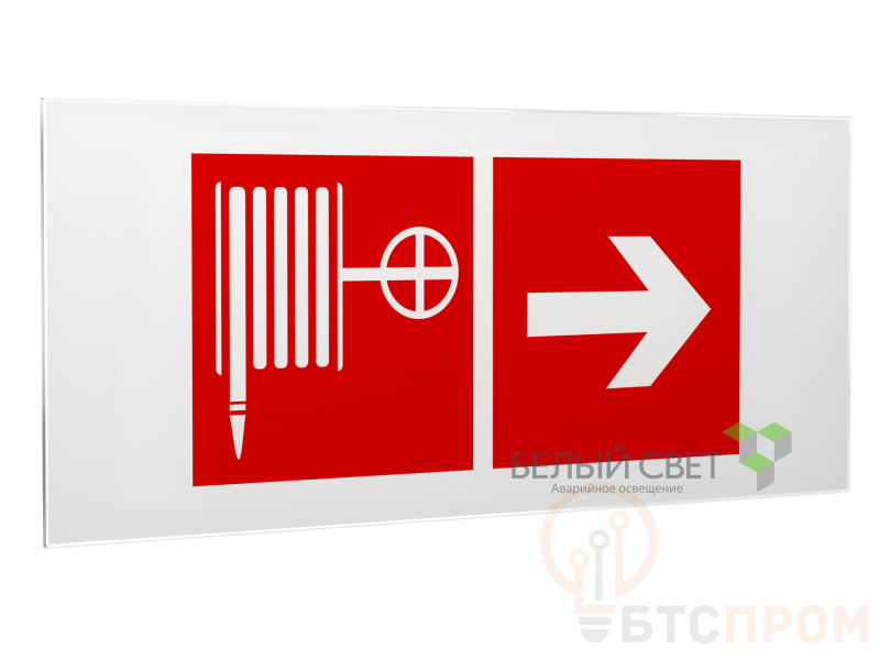 Знак безопасности "Указатель движения к пожарному крану направо", габаритные размеры 545х235 мм, фактические размеры 400х200 мм, сигнальный цвет - красный, контрастный цвет - белый