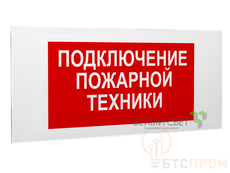 Знак безопасности "Подключение пожарной техники", габаритные размеры 545х235 мм, фактические размеры 400х200 мм, сигнальный цвет - красный, контрастный цвет - белый