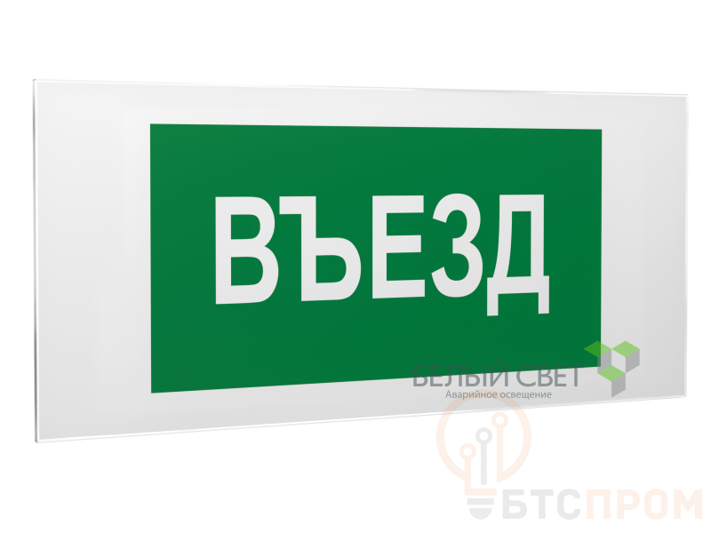 Знак безопасности "Указатель въезда", габаритные размеры 545х235 мм, фактические размеры 400х200 мм, сигнальный цвет - зеленый, контрастный цвет - белый
