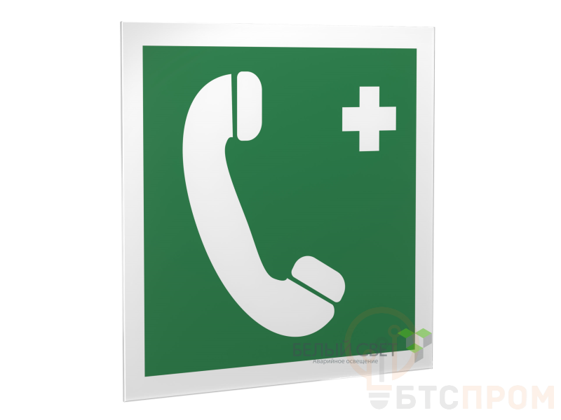 Знак безопасности "Телефон связи с медицинским пунктом (скорой медицинской помощью)", габаритные размеры 455х455 мм, фактические размеры 400х400 мм, сигнальный цвет - зеленый, контрастный цвет - белый
