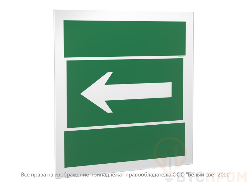 Знак выполнен в строгом соответствии с требованиями стандартов. Основное изображение — белая стилизованная фигура человека и стрелка, направленная вправо, на зеленом фоне. Зеленый цвет символизирует безопасность и является сигнальным цветом для указательных эвакуационных знаков. Для эффективного оповещения в условиях задымления или отключения электроэнергии знак оснащен собственной автономной системой питания. Он имеет встроенный аккумулятор и светодиодный источник белого света, который обеспечивает яркое и равномерное свечение в темноте, делая указатель хорошо видимым.