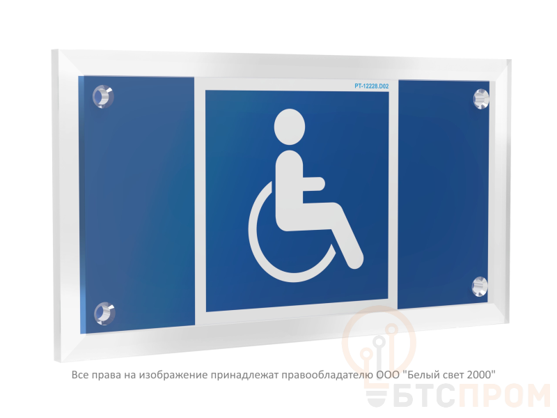 Знак безопасности PT-12228.D02 "Символы доступности для инвалидов всех категорий" предназначен для информирования о доступности объекта или услуги для маломобильных групп населения. Это обязательный элемент формирования безбарьерной среды в соответствии с требованиями действующих нормативов.