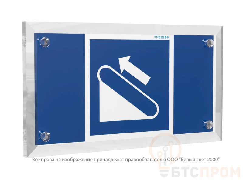 Знак безопасности PT-12228.D04 «Эскалатор (подъемник)» — это специализированная пиктограмма, предназначенная для информирования и обеспечения безопасности людей в общественных и коммерческих зонах. Знак выполнен в белом цвете с контрастной черной пиктограммой и надписью, что обеспечивает его высокую видимость и быстрое распознавание.