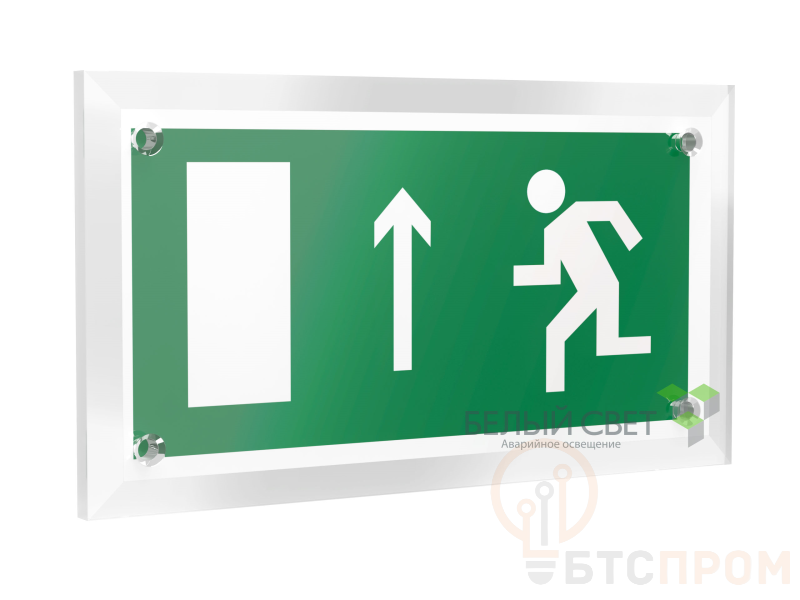 Знак безопасности "Направление к эвакуационному выходу прямо", габаритные размеры 220х120 мм, фактические размеры 200х100 мм, сигнальный цвет - зеленый, контрастный цвет - белый