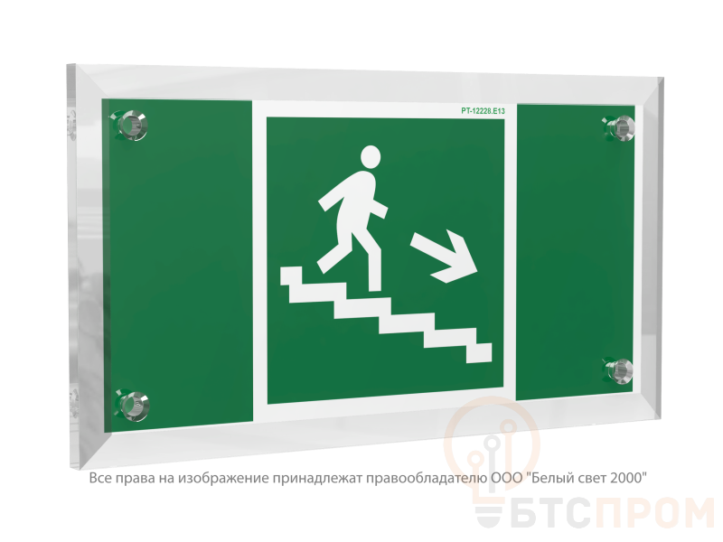 Знак безопасности PT-12228.E13 "Направление к эвакуационному выходу по лестнице вниз (прав.)" Белый свет a20895