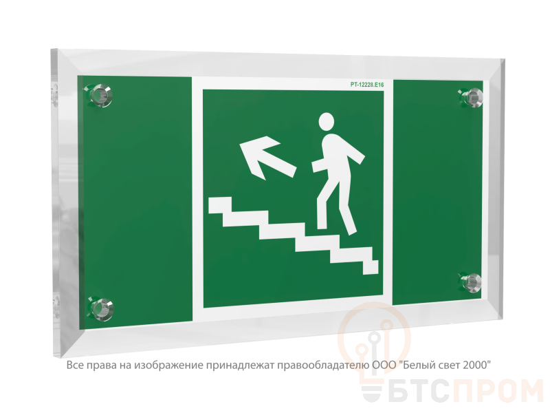 Знак безопасности PT-12228.E16 "Направление к эвакуационному выходу по лестнице вверх (лев.)" Белый свет a20898