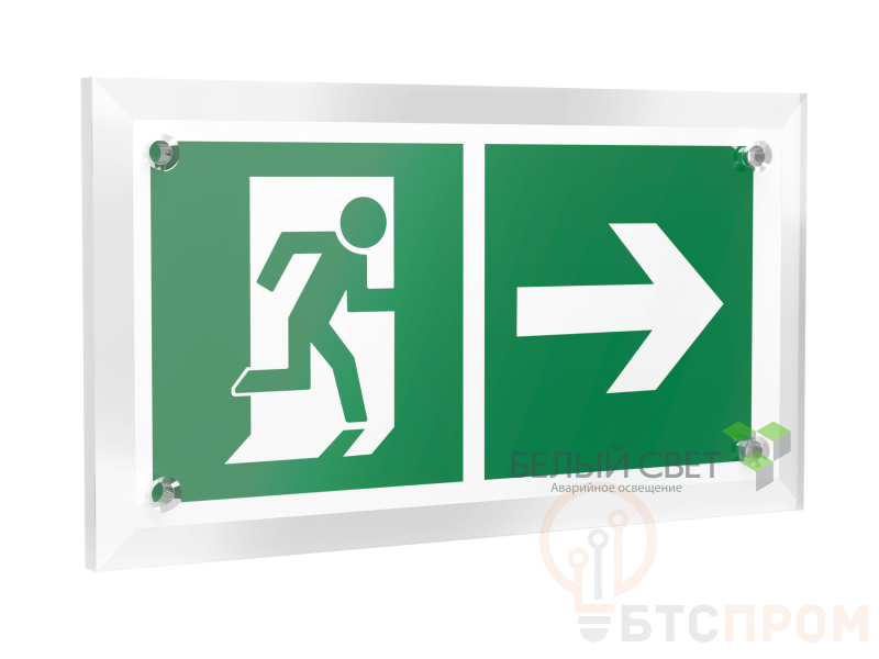 Знак безопасности "Направление к эвакуационному выходу направо", габаритные размеры 220х120 мм, фактические размеры 200х100 мм, сигнальный цвет - зеленый, контрастный цвет - белый