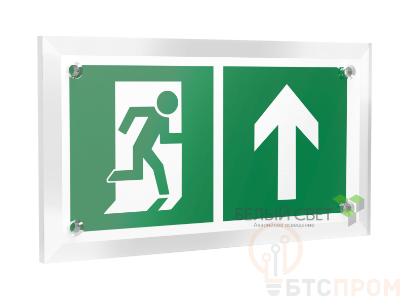 Знак безопасности "Направление к эвакуационному выходу прямо", габаритные размеры 220х120 мм, фактические размеры 200х100 мм, сигнальный цвет - зеленый, контрастный цвет - белый