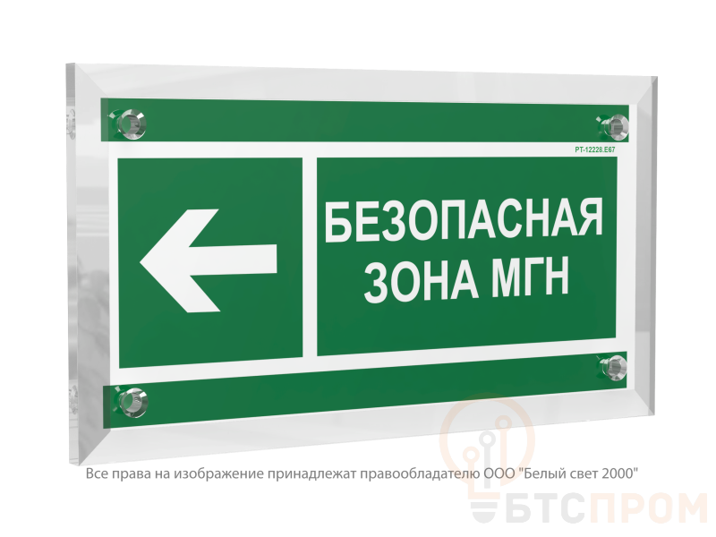 Знак безопасности PT-12228.E67 "Направление движения к безопасной зоне МГН налево" Белый свет a20920