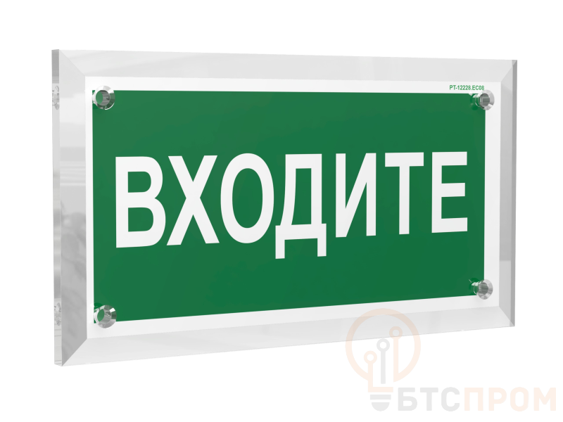Знак безопасности "Входите", габаритные размеры 220х120 мм, фактические размеры 200х100 мм, сигнальный цвет - зеленый, контрастный цвет - белый