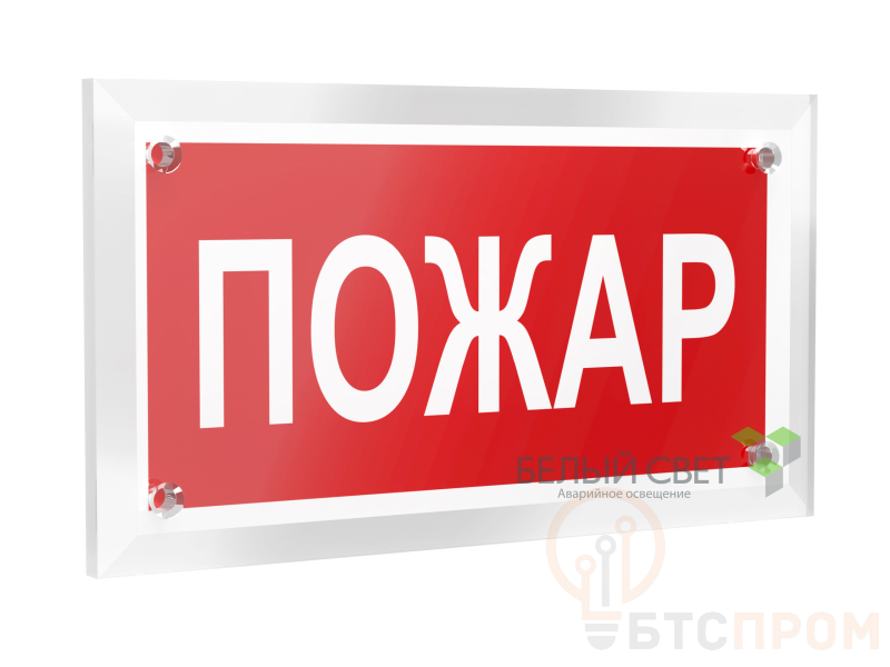 Знак безопасности "Пожар", габаритные размеры 220х120 мм, фактические размеры 200х100 мм, сигнальный цвет - красный, контрастный цвет - белый