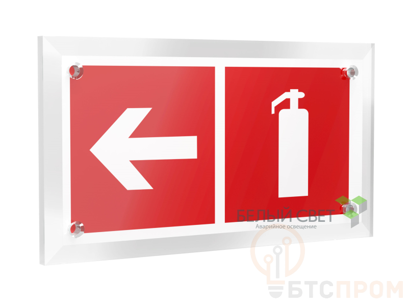 Знак безопасности "Указатель движения к огнетушителю налево", габаритные размеры 220х120 мм, фактические размеры 200х100 мм, сигнальный цвет - красный, контрастный цвет - белый