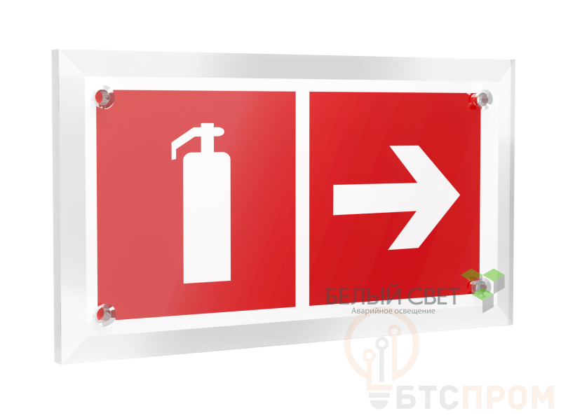 Знак безопасности "Указатель движения к огнетушителю направо", габаритные размеры 220х120 мм, фактические размеры 200х100 мм, сигнальный цвет - красный, контрастный цвет - белый
