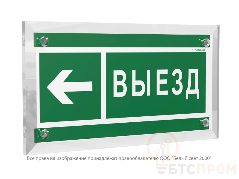 Знак выполнен в виде строгой прямоугольной таблички белого цвета с нанесенной четкой пиктограммой и стрелкой, указывающей направление движения к месту выезда. Символы и контрастная черная окантовка обеспечивают высокую видимость и легкое считывание информации с большого расстояния и под разными углами. Для работы используется энергоэффективная светодиодная подсветка белого света, что гарантирует бесперебойную работу знака в условиях недостаточной видимости, в темное время суток и на плохо освещенных участках.