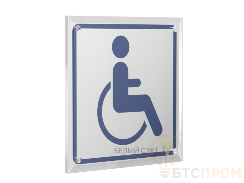 Знак безопасности "Символы доступности для инвалидов в креслах колясках", габаритные размеры 172х172 мм, фактические размеры 150х150 мм, сигнальный цвет - белый, контрастный цвет - синий