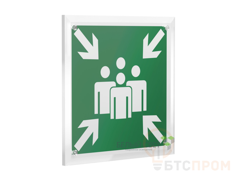 Знак безопасности "Пункт (место) сбора", габаритные размеры 172х172 мм, фактические размеры 150х150 мм, сигнальный цвет - зеленый, контрастный цвет - белый