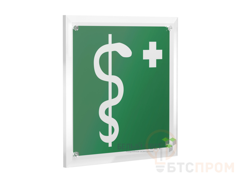 Знак безопасности "Медицинский кабинет", габаритные размеры 172х172 мм, фактические размеры 150х150 мм, сигнальный цвет - зеленый, контрастный цвет - белый