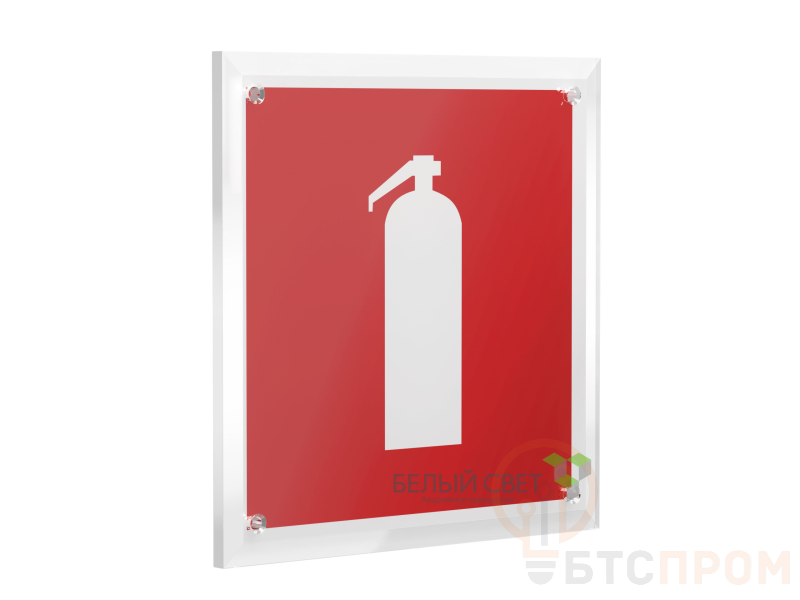Знак безопасности "Огнетушитель", габаритные размеры 172х172 мм, фактические размеры 150х150 мм, сигнальный цвет - красный, контрастный цвет - белый