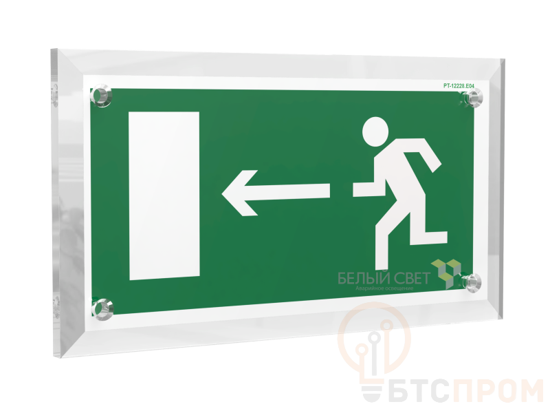 Знак безопасности "Направление к эвакуационному выходу налево", габаритные размеры 320х170 мм, фактические размеры 300х150 мм, сигнальный цвет - зеленый, контрастный цвет - белый