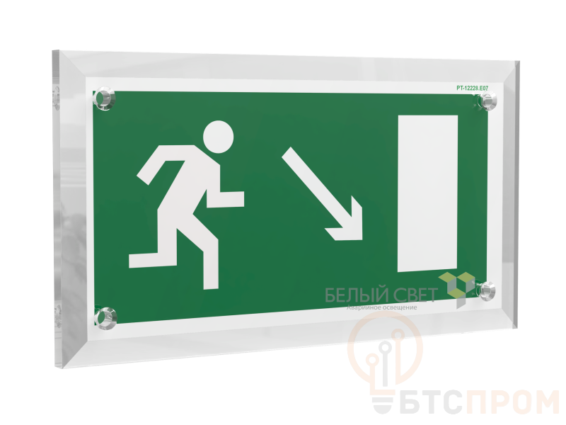 Знак безопасности PT-17328.E07 "Напр. к эвакуационному выходу направо вниз" Белый свет a22467 фото в каталоге от BTSprom.by