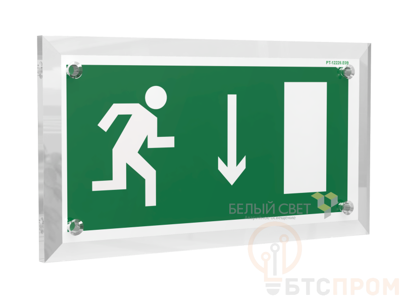 Знак безопасности PT-17328.E09 "Указ. двери эвакуац. выхода (прав.)" Белый свет a22469 фото в каталоге от BTSprom.by